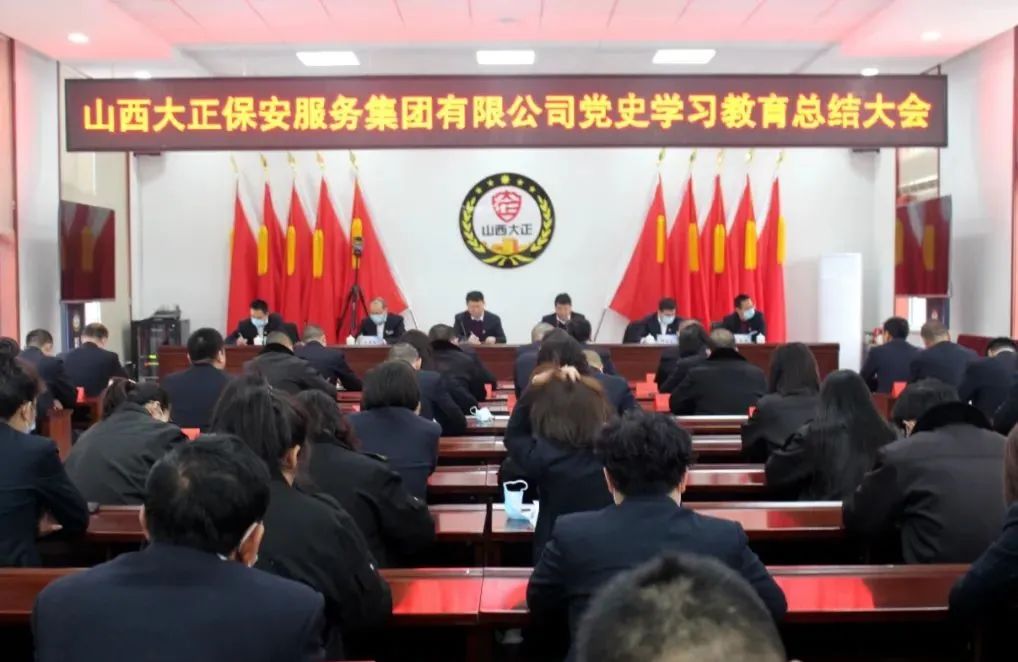 2022年1月24日上午,山西大正保安服務(wù)集團有限公司召開黨史學習教育總結(jié)大會。會議深入貫徹落實習近平總書記重要指示精神和黨史學習教育總結(jié)會議精神,全面總結(jié)了一年來公司黨史學習教育工作開展情況,并對公司今后進一步拓展黨史學習教育成果做出了部署,指明了方向。集團公司黨委副書記、總經(jīng)理趙培宏主持會議并作總結(jié)講話。黨委副書記、副總經(jīng)理陳志平出席會議并作公司黨史學習教育總結(jié)報告。公司領(lǐng)導班子成員、各單位、各分公司負責人、機關(guān)全體職工參加大會。