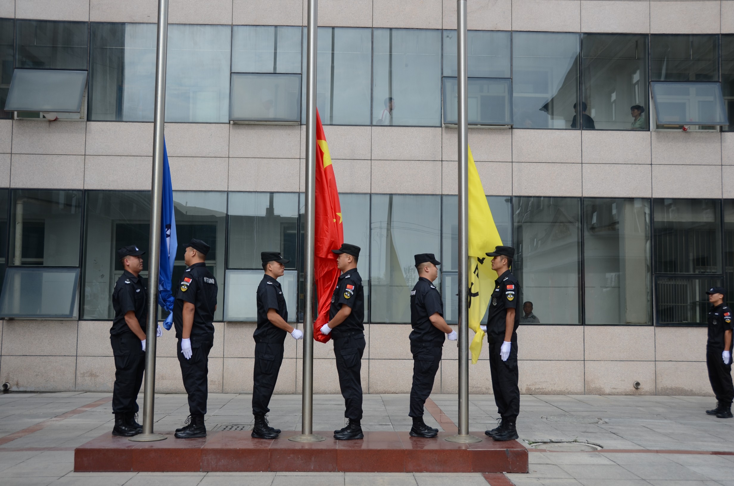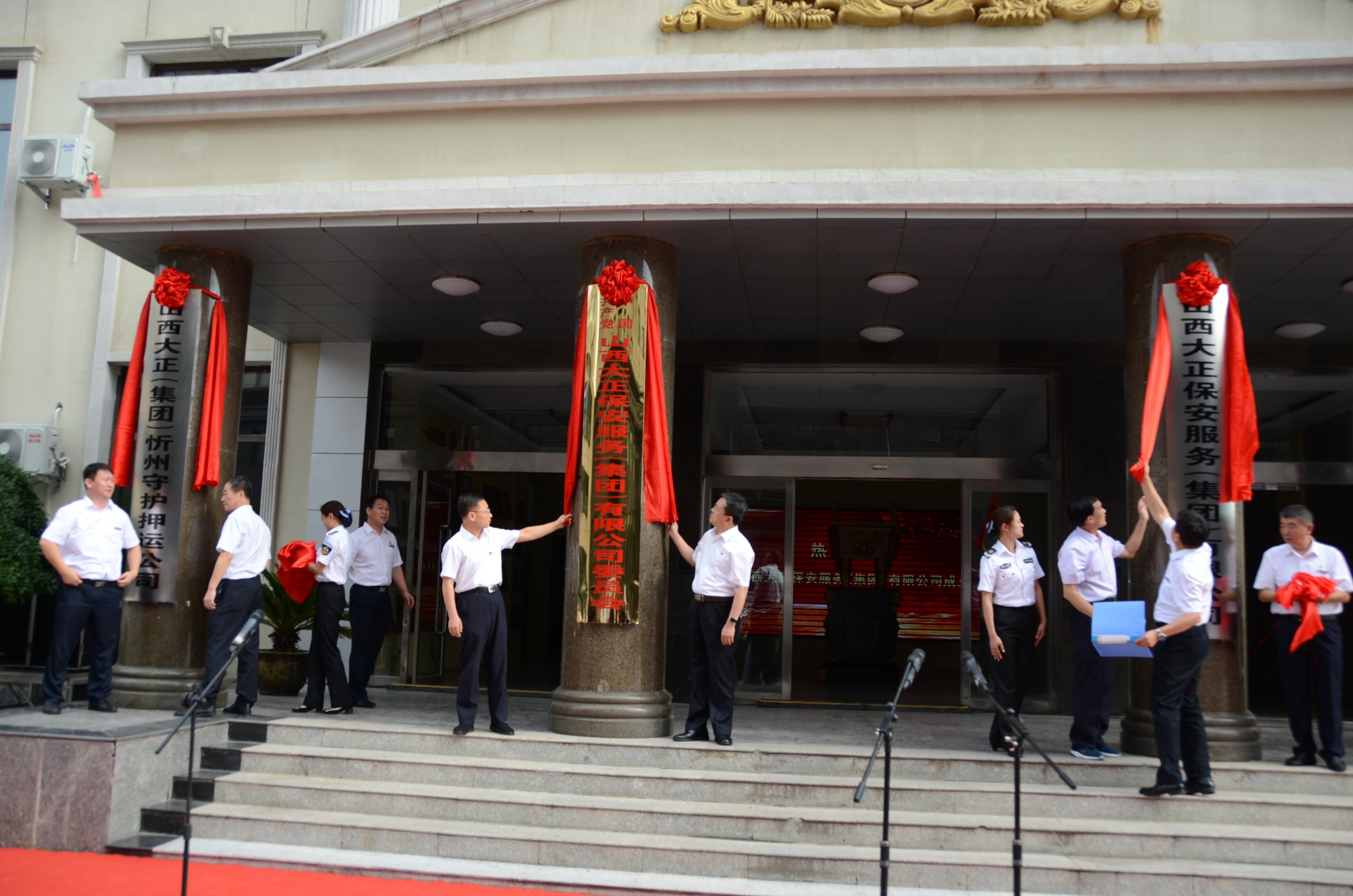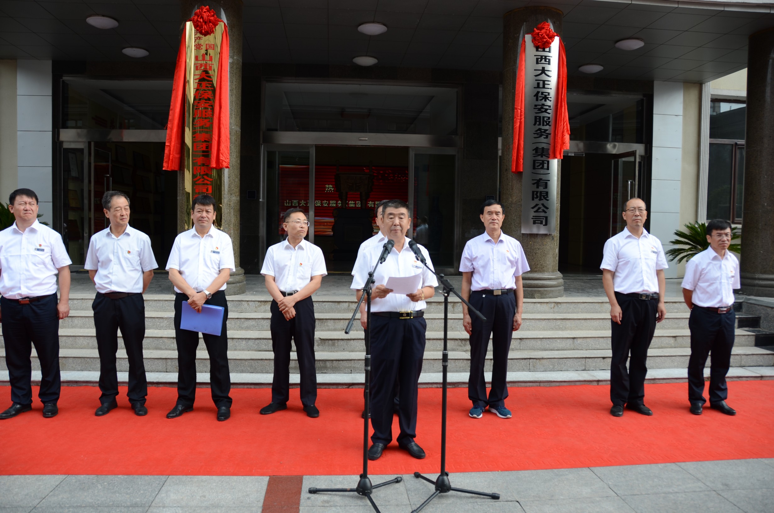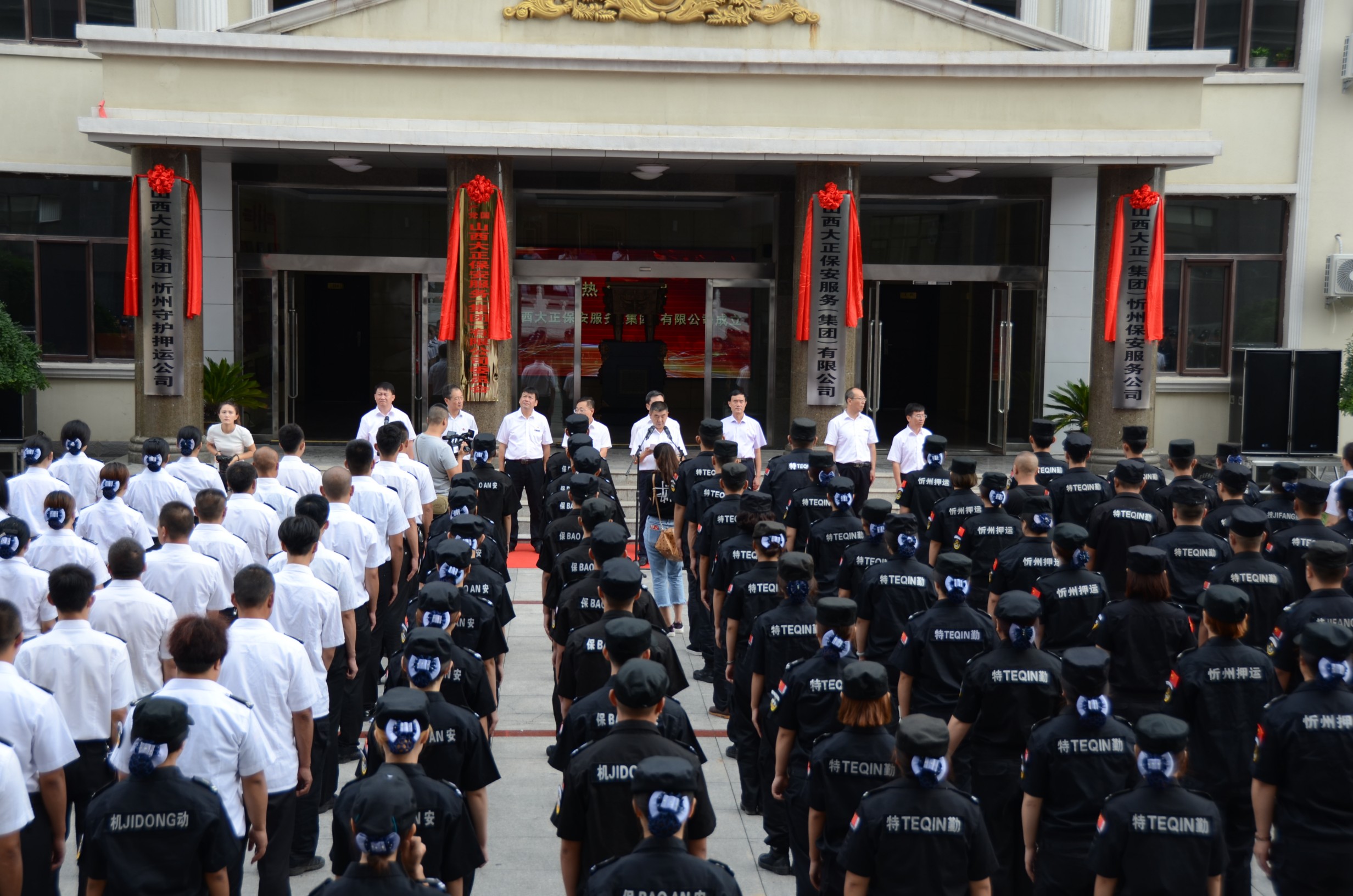 8月18日上午,在山西大正保安服務(wù)(集團(tuán))有限公司喬遷新址之際,舉行了盛大的揭牌儀式。儀式上,首先伴著《義勇軍進(jìn)行曲》的響起,全體人員行注目禮,莊嚴(yán)肅穆,旗手們著裝整齊,邁著矯健的步伐,護(hù)著鮮艷的五星紅旗入場(chǎng)舉行升國(guó)旗儀式。市國(guó)資委主任吳瑞峰、黨委書記劉晉生、紀(jì)檢書記岳玉亮、調(diào)研員劉建文等領(lǐng)導(dǎo)同志出席,公司黨委書記、董事長(zhǎng)、總經(jīng)理張躍生攜黨政領(lǐng)導(dǎo)班子,以及機(jī)關(guān)各單位員工、基層單位員工代表共300余人參加了揭牌儀式。揭牌儀式甴公司黨委副書記、董事、副總經(jīng)理陳志平同志主持。