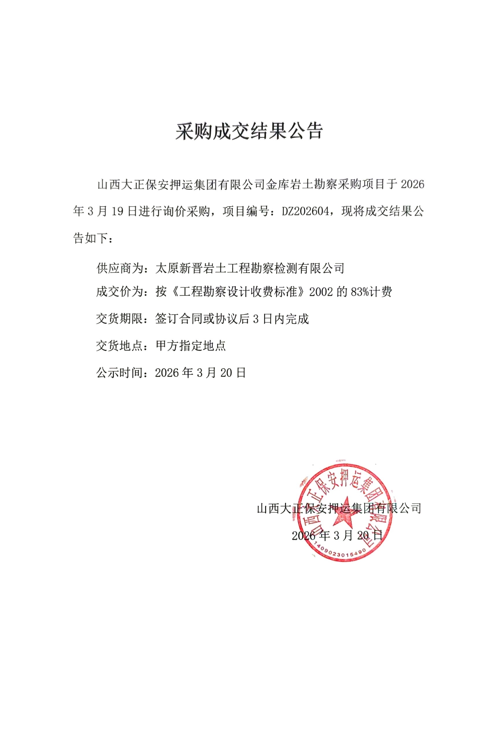 成交結(jié)果公示