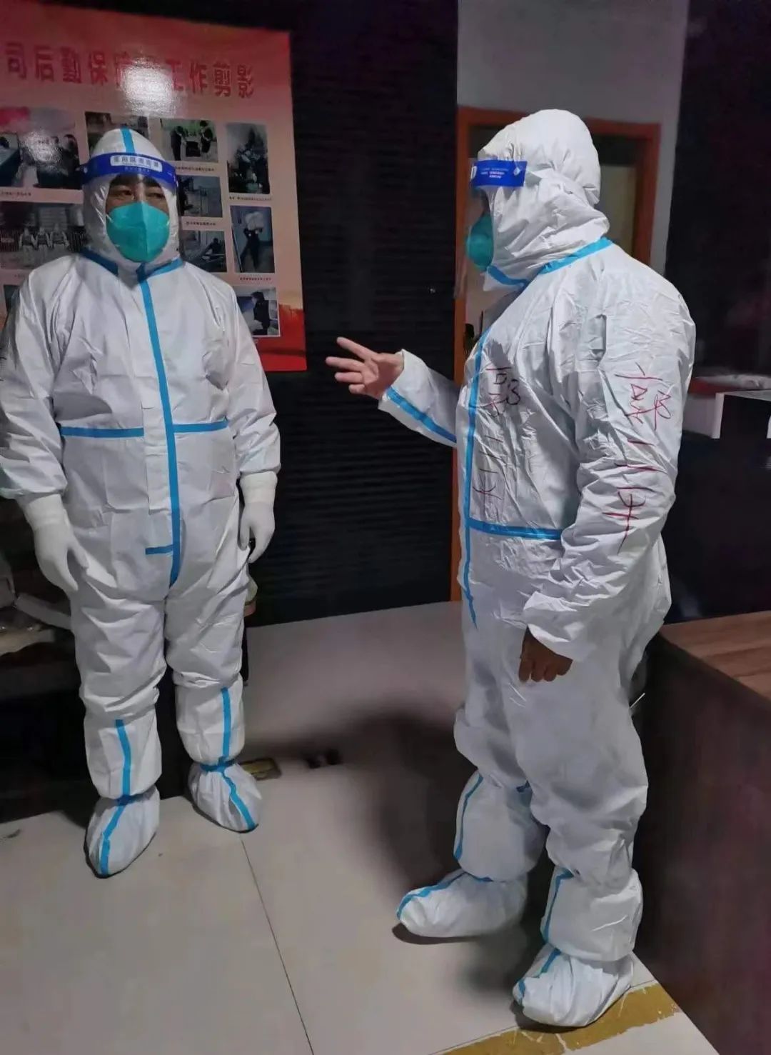 11月20日,對于堅守在師院東區(qū)的大正來說,也是一個特別的日子,因為今晚,隨著隔離轉運人員集中隔離觀察期時間已到,有1017名的集中隔離人員根據(jù)疫情防控要求可以轉運回各自家中進行居家隔離觀察,億通公司經(jīng)理郭二平在接到協(xié)同醫(yī)護人員轉運隔離人員任務后,第一時間組織、部署隊員們投身到這次任務中,工作區(qū)的18名同志全員參與。出發(fā)前,經(jīng)理郭二平召開了動員會,一遍遍叮囑隊員們要如何做好防護,要如何以一個大正人的形象在保護自己的同時保質保量的完成使命,就像一個家庭的家長一樣,挨個檢查隊員們的防護服是否都按要求穿著規(guī)范,從晚上7點鐘到次日5點鐘,一直和隊員們并肩作戰(zhàn),直至回到師院東區(qū)工作區(qū)隊員們都回到各自宿舍,他才回去安心睡覺,在本就悶熱的防護服下,隊員們都是個個滿頭大汗,汗?jié)窦贡常踔劣袀別隊員出現(xiàn)胸悶、惡心等癥狀,但都沒有一個人抱怨,沒有一個人思想動搖,這種滋味我們難以感同身受,只能說,在前方負重前行的你們是好樣的,是我們的驕傲和標桿。
