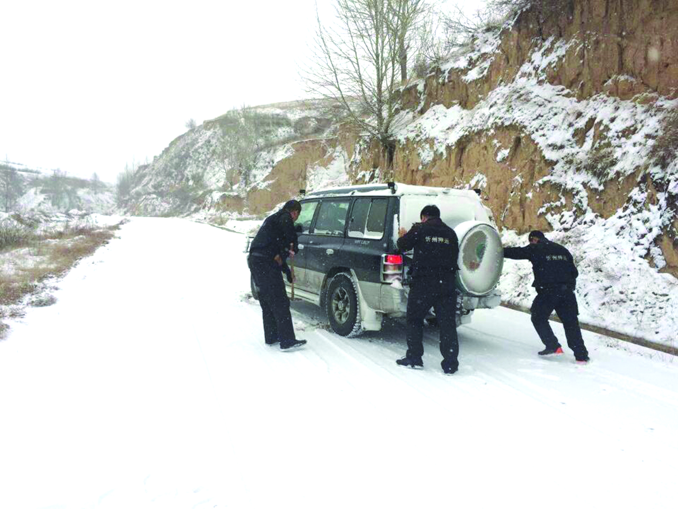 吃過(guò)早飯后,整理好裝備準(zhǔn)備出車,隊(duì)長(zhǎng)點(diǎn)名開(kāi)會(huì),會(huì)上強(qiáng)調(diào)雪天注意行車安全,制定了應(yīng)急預(yù)案,并隨車配發(fā)了路上用的鏟雪用具,出現(xiàn)情況隨時(shí)逐級(jí)匯報(bào)。